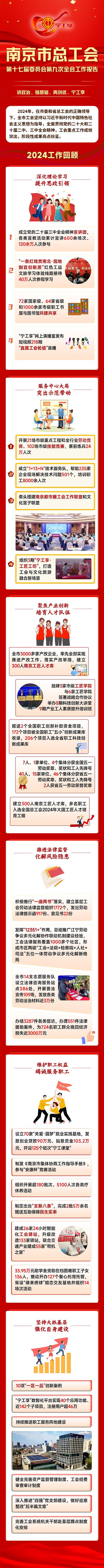 2025年1月24日,南京市總工會第十七屆委員會第九次全體會議順利舉行。會議以習近平新時代中國特色社會主義思想為指導,認真學習貫徹黨的二十大和二十屆二中、三中全會精神,貫徹落實省市委和全總省總部署要求,總結2024年工作,部署2025年任務。市人大常委會副主任、市總工會主席談健出席會議并講話,市總工會黨組書記、副主席焦勇主持會議,市總工會有關領導結合各自分工部署重點工作,5家單位作交流發言。